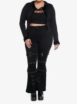 Social Collision Black Grommet Strap Zipper Flare Pants
