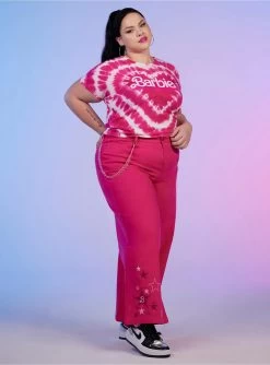 Think pink with Barbie! Step out into Malibu with the perfect baby tee on, featuring a hot pink & white tie-dye pattern in the shape of a heart, and the Barbie logo printed at the center.