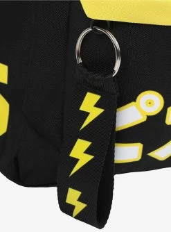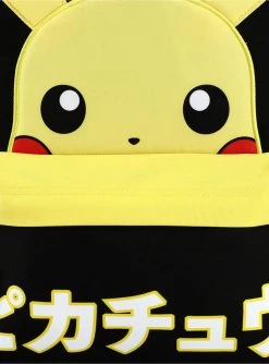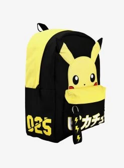 Pikachu’s ready to accompany you to the Pokémon Gym! This Pokémon backpack features a 3D appliqué of Pikachu peeking over the front zipper pocket. “Pikachu” in Japanese is printed on the front zipper pocket and there’s a lightning pull zipper tab. Comes with interior laptop sleeve and adjustable straps.