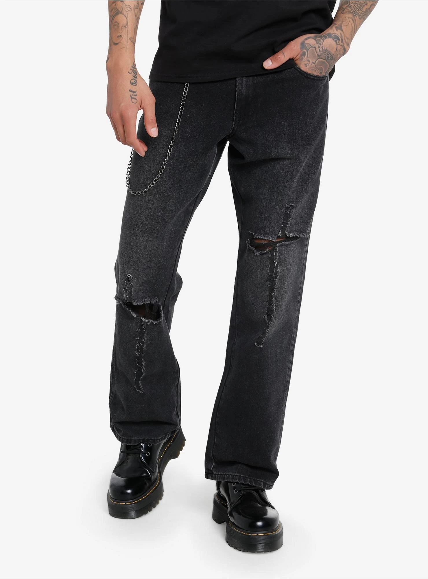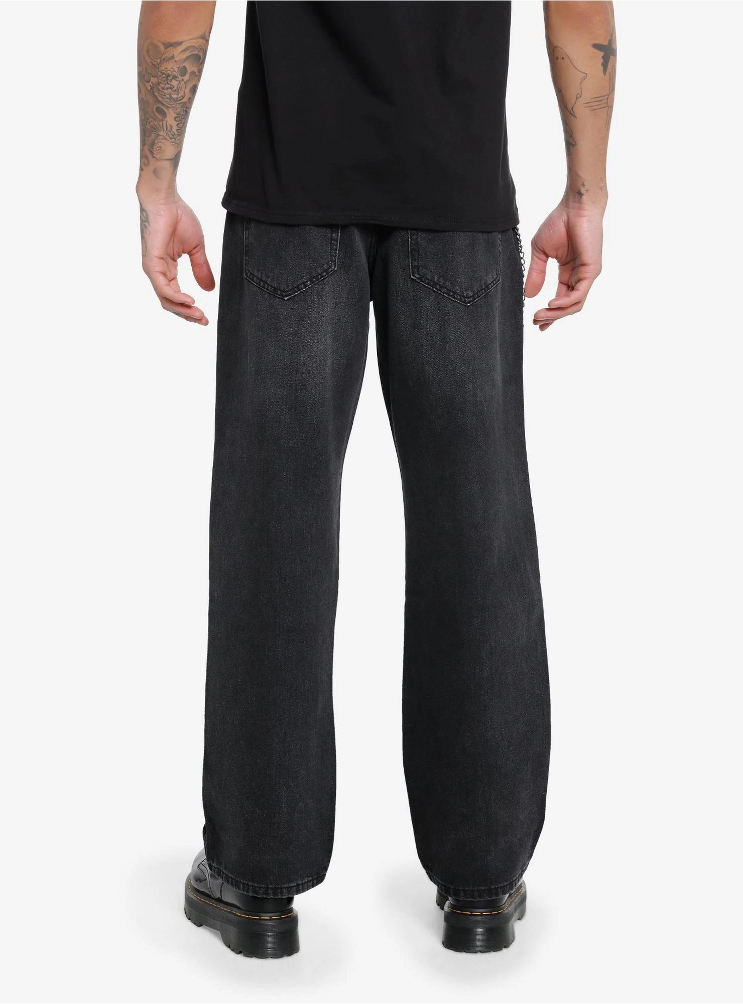 It’d be a sin to not add these jeans to your rotation. Featuring a black wash with destruction on the legs in the shape of crosses. They have a carpenter pant fit and come with a removable side chain and classic 5-pocket styling.
