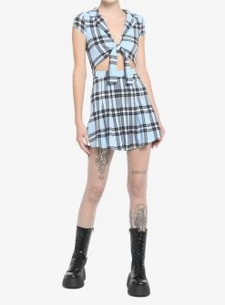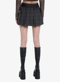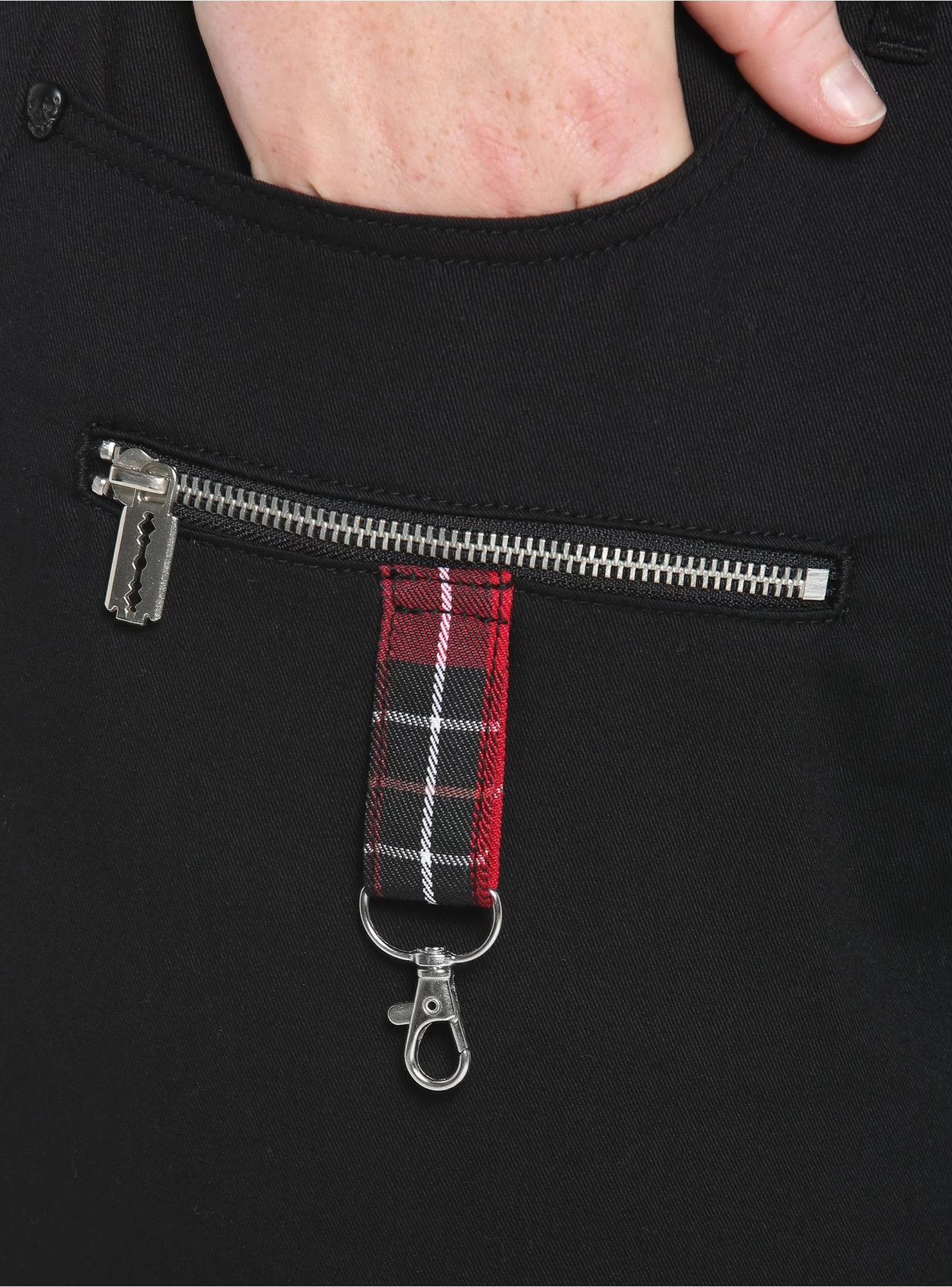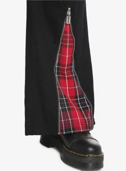Calling all mall goths. These flared pants are made for getting into trouble thanks to edgy details like razor zipper pulls, buckles and red plaid accents. You can zip up the flared legs for a more tapered look, or keep them open.