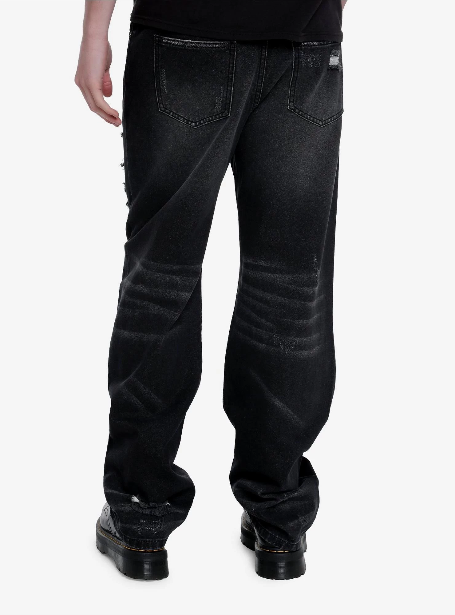 Black Ripped Straight Leg Denim Pants