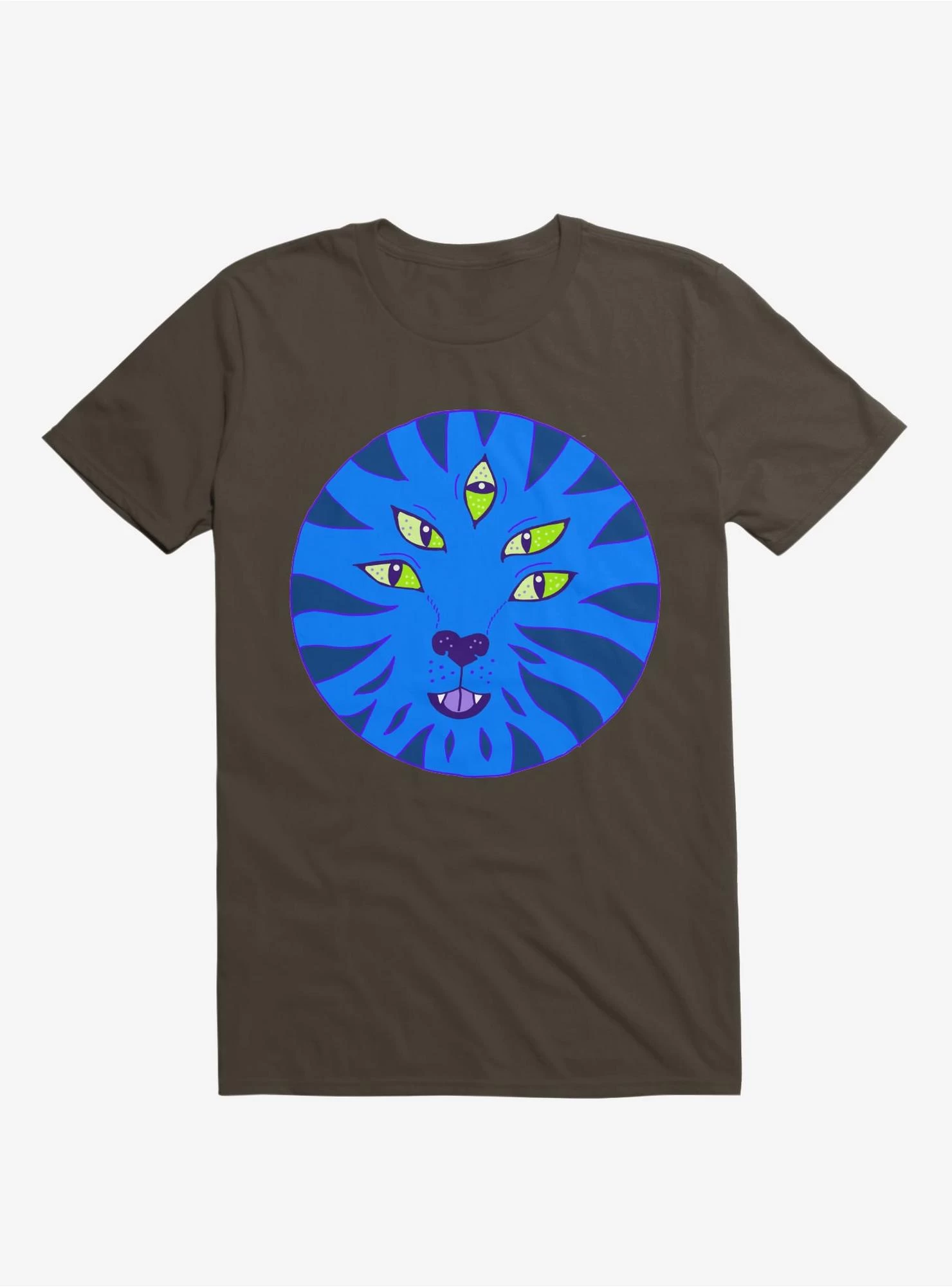 Eyes of the tiger — five, to be exact! This lightweight brown graphic tee features the many peepers of a big cat in blue.