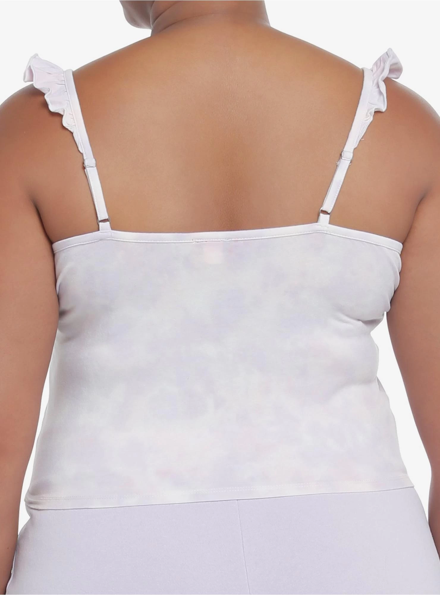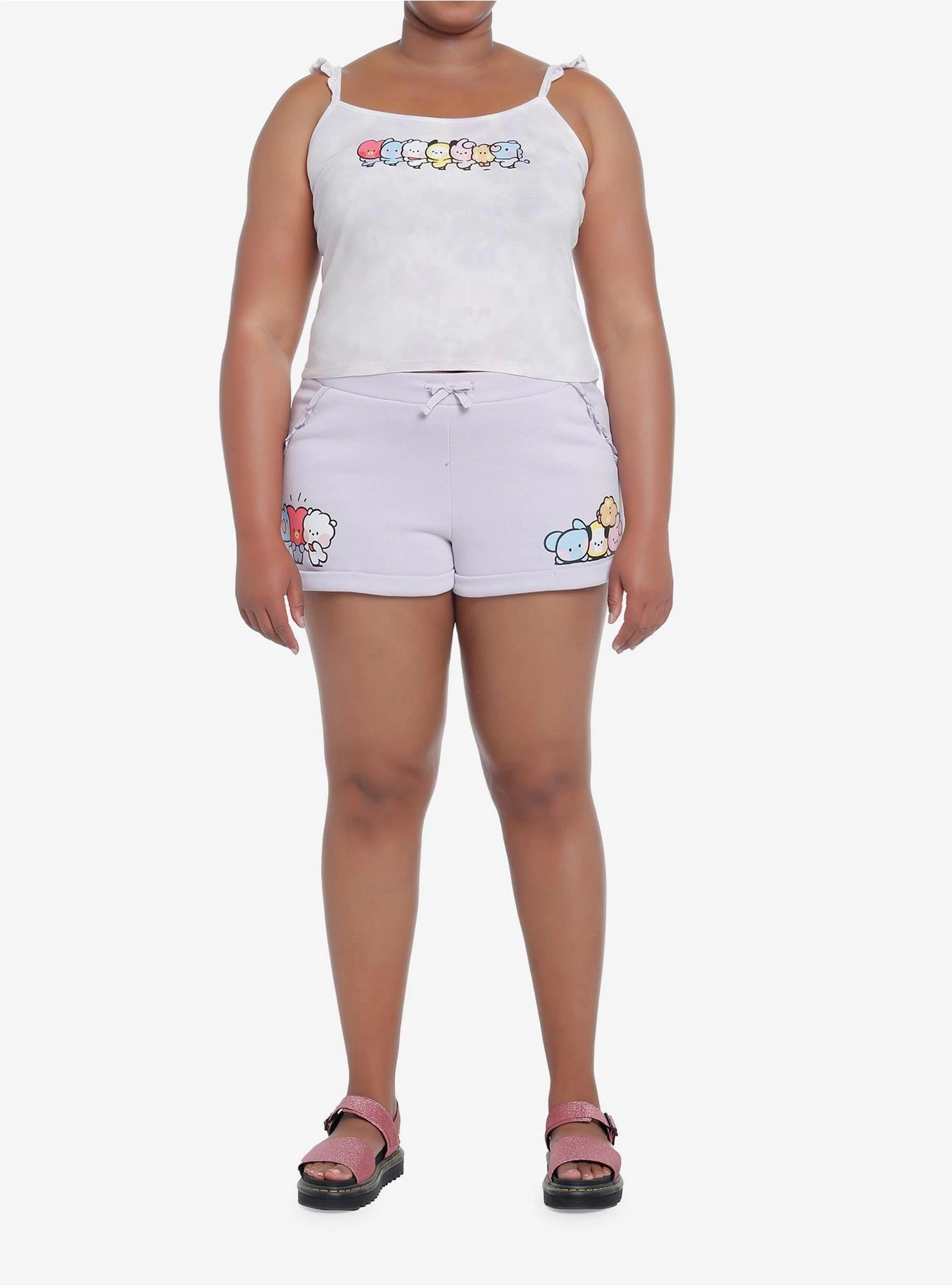 Being the most influential pop-culture sensation in the galaxy is a lot of work! Take a breather and relax with the BT21 crew! This cozy tank top has a slightly fitted, crop fit and features the Universtars holding hands across the chest. Comes with a pink and lavender tie-dye pattern and adjustable ruffle straps.