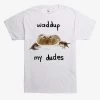 Like bears? You’re in luck! This lightweight navy blue tee features a bear sitting in the lotus position with “Rub my belly for luck” verbiage below.