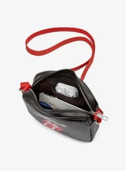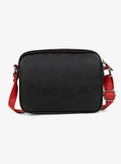 Bugatti Rolling Stones Vegan Leather Crossbody Bag Black with Red Strap
