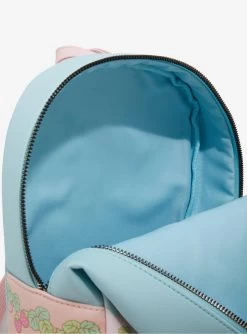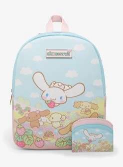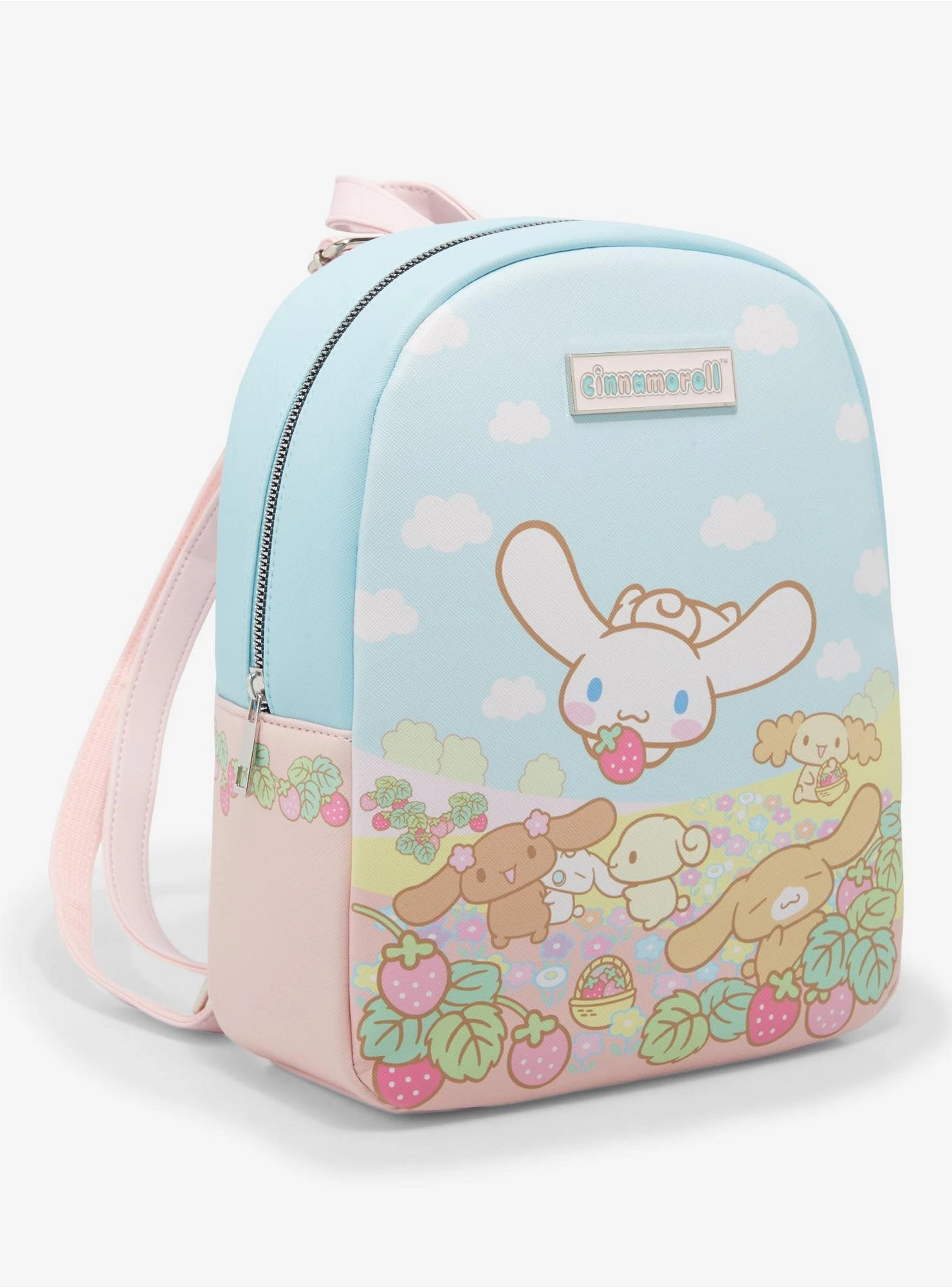 Meeting up with Cinnamoroll and his fam for a picnic? Pack all of your sweet essentials into this mini backpack! The front features Cinnamoroll with his family, surrounded by pastel strawberries and flowers. Comes with adjustable straps and silver-tone straps.