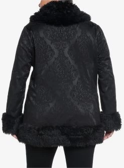 Cosmic Aura Black Brocade Faux Fur Trim Girls Jacket Plus Size
