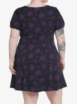 Cosmic Aura Black & Purple Rose Lace-Up Babydoll Dress Plus Size