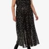 This fall is all about the whimsigoth look! This navy blue cami dress features a top mesh layer with an allover celestial print. Comes with ruching on the sides, a lettuce trim and adjustable straps.