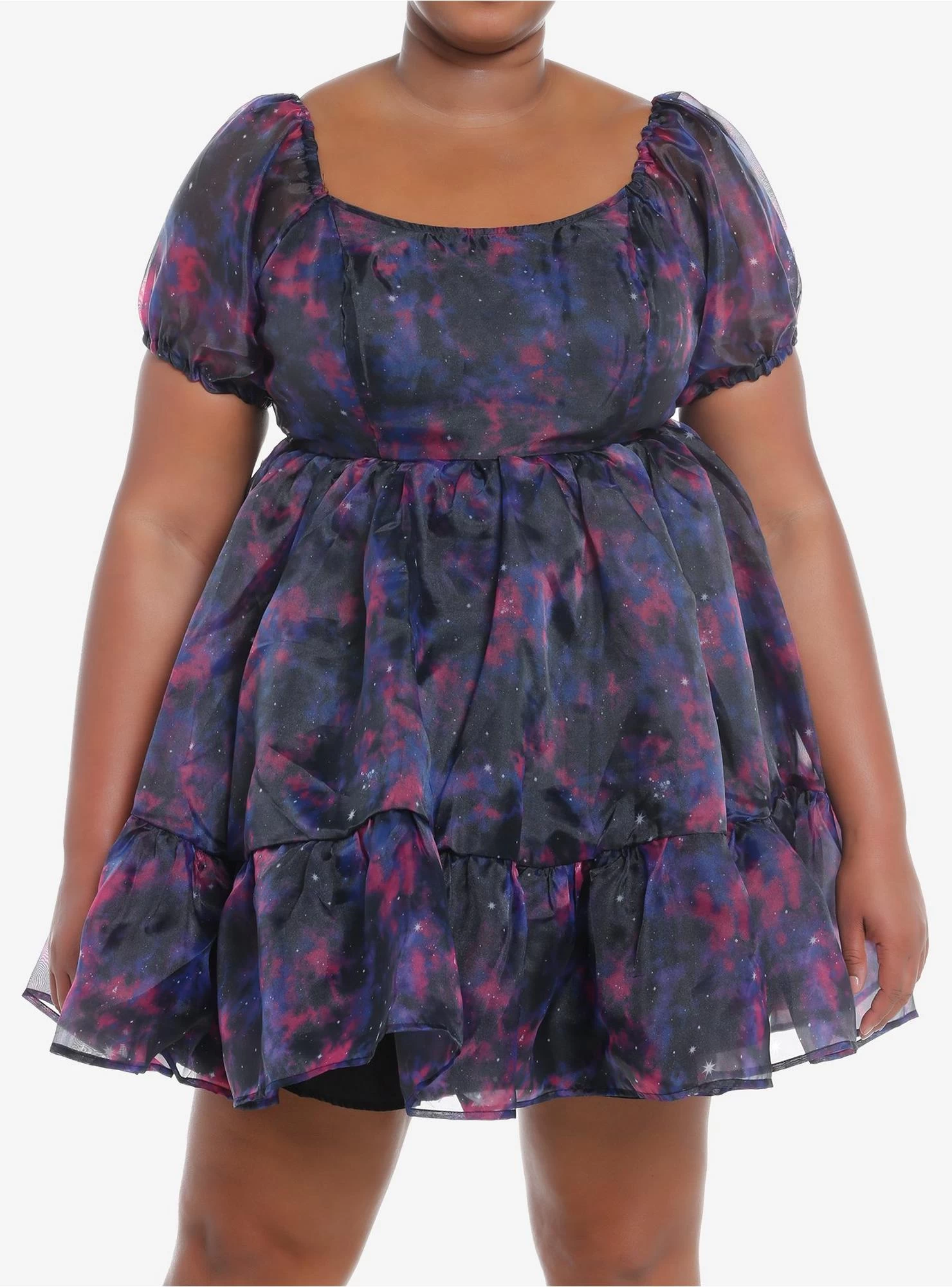 Cosmic Aura Galaxy Tiered Organza Dress Plus Size