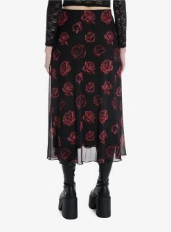 Cosmic Aura Red Rose Mesh Midi Skirt