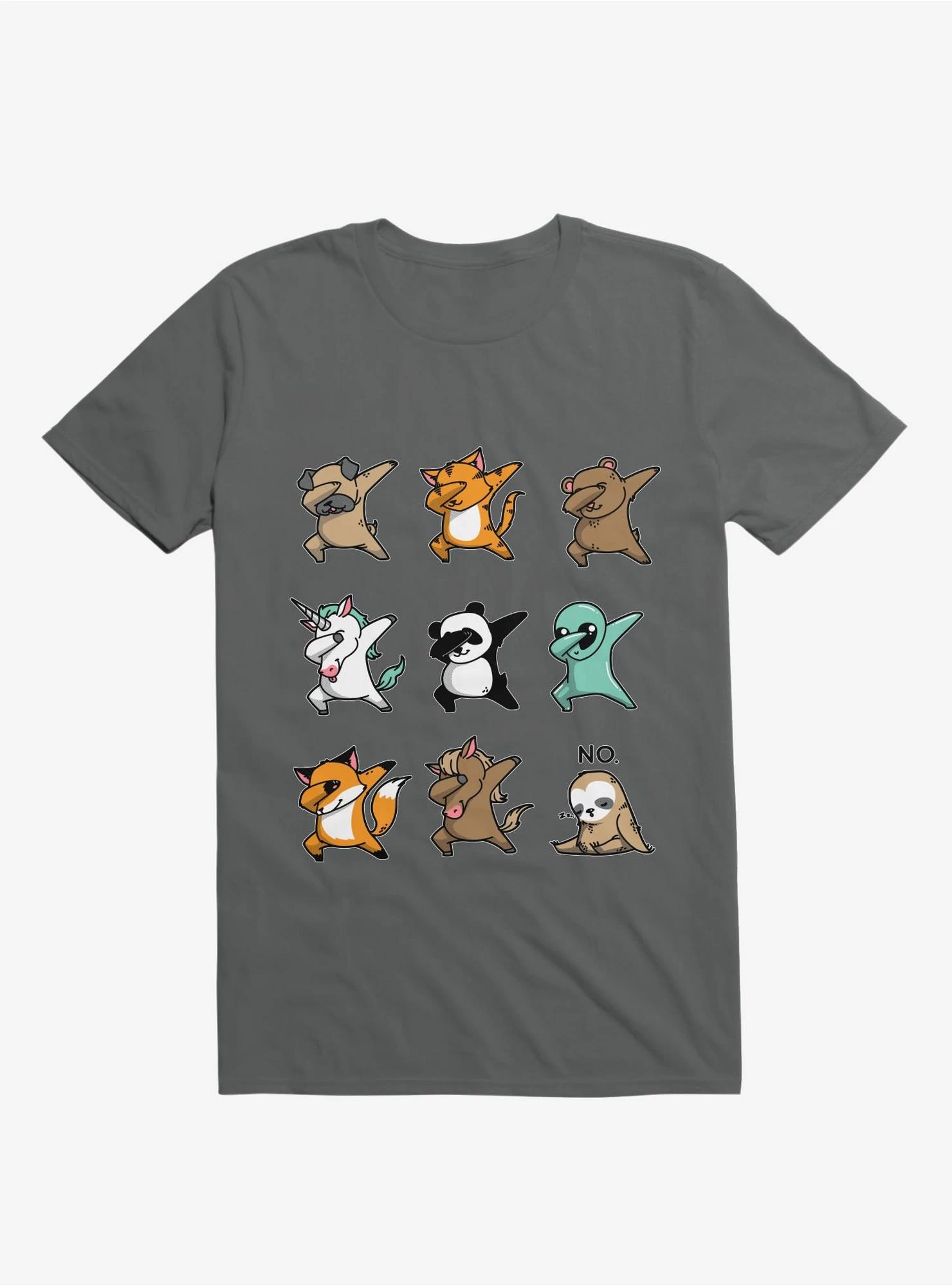 Everybody’s dabbing! Oh, okay — everybody except you, Mr. Sloth. This lightweight charcoal grey graphic tee features a dog, cat, bear, unicorn, panda, alien, fox and horse performing the classic move.