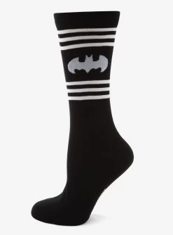Simple enough for work, and fun enough for play. These striped Batman socks contrast bright white stripes with deepest black, and a gray classic logo appears front and center. They’re the perfect balance of fun and formal for the grown-up Batman fan. Officially licensed by DC Comics, One size fits most (up to size 12). JuteCell yarn is eco friendly, antimicrobial, and has moisture wicking properties.