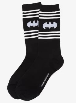 Simple enough for work, and fun enough for play. These striped Batman socks contrast bright white stripes with deepest black, and a gray classic logo appears front and center. They’re the perfect balance of fun and formal for the grown-up Batman fan. Officially licensed by DC Comics, One size fits most (up to size 12). JuteCell yarn is eco friendly, antimicrobial, and has moisture wicking properties.