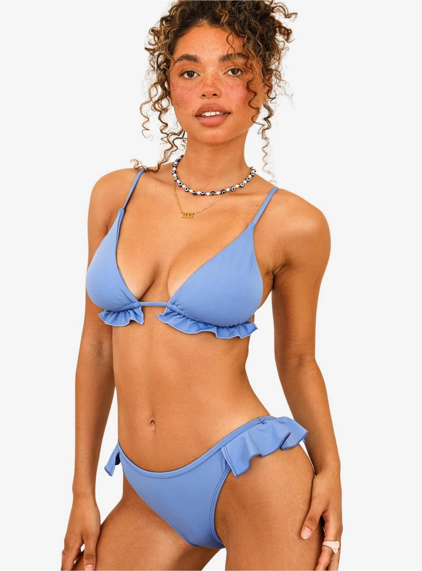 The triangle kini just got cuter! Our Isla Top is perfect for your next island oasis vacay with its ruffle detail and adjustable tie back and straps.
