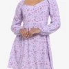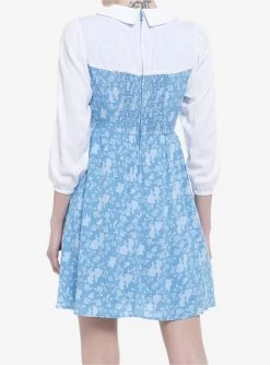 Heading to town to check out the local book shop? You’ll want to dress for the occasion! From Beauty and the Beast, this dress is inspired by Belle’s village outfit and features an allover print of icons from the film. Comes with a collar, lace-up detailing at the bust and bishop sleeves. Complete with smocking on the back, side seam pockets and a back zipper closure.