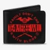 Stylish and sleek, this hinged wallet is made from vegan leather and stainless steel. It measures 7 x 4 x 0.75 inches, with 2 billfolds, 4 card slots, and a windowed ID holder.