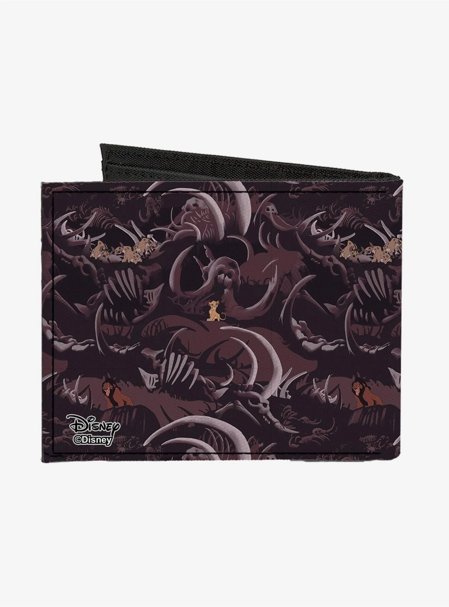 Disney The Lion King Scar Pose Elephant Graveyard Bones Bifold Canvas Wallet