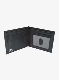 This men’s bi-fold wallet is made from high-density woven canvas. It measures 4 x 3.5 x 0.5 inches, and features the standard billfold, 5 card slots, and windowed ID holder.