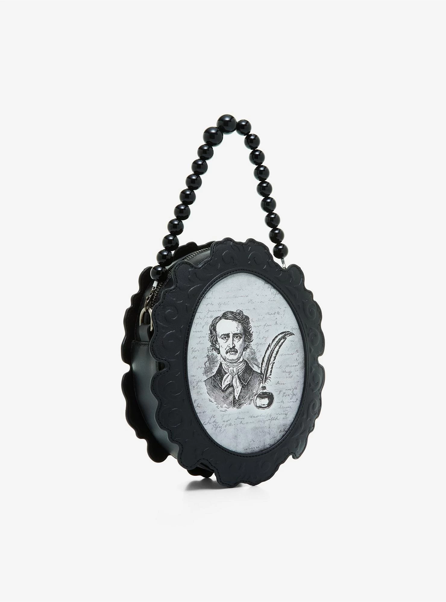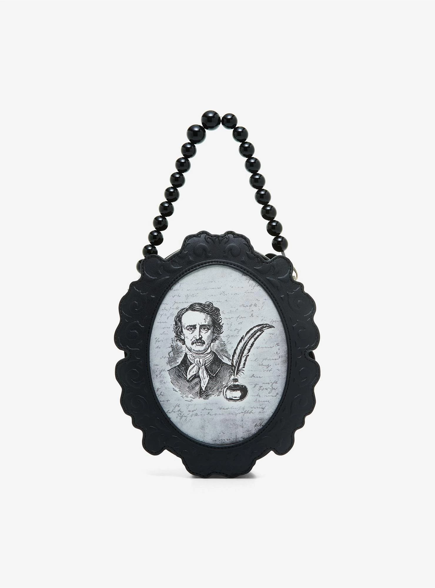 Don’t have a cute bag to go with your dark poet ‘fit? Nevermore! Grab this bag that’s made to look like a cameo of the famous writer, with his face and a quill on one side, and a raven on the other with text reading “Nevermore” and “Quoth the raven”. The inside is lined and has an interior pocket, and the bag comes with a beaded carrying handle and detachable chain strap.