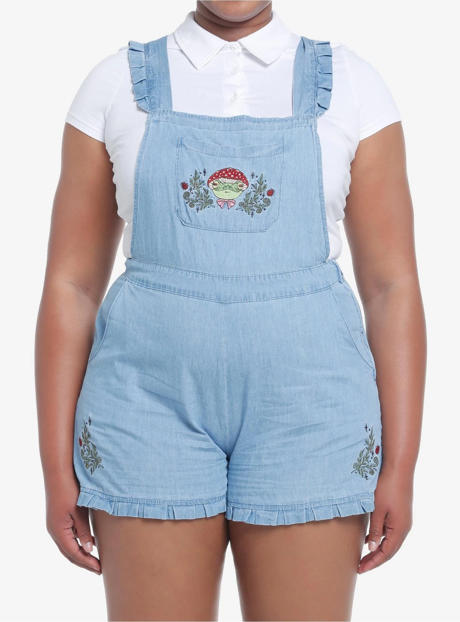 Frog With Mushroom Hat Ruffled Chambray Shortalls Plus Size