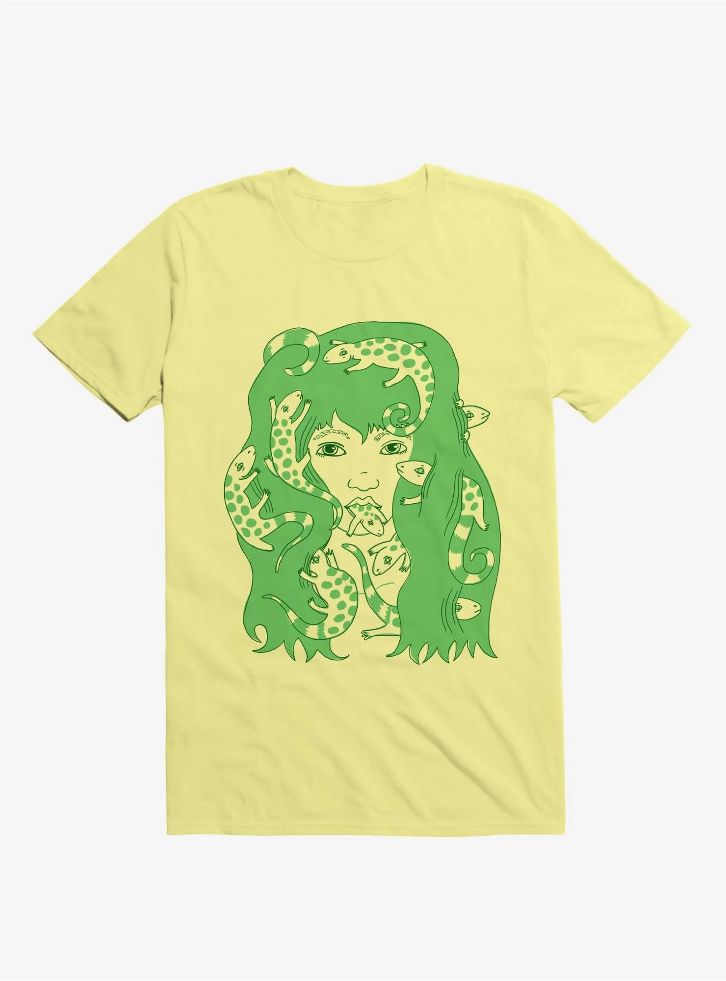 Green Lizard Eating Girl Lizzie Corn Silk Yellow T-Shirt