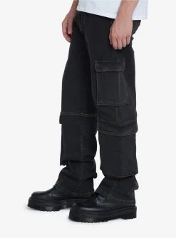 Grey Wash Cargo Denim Pants