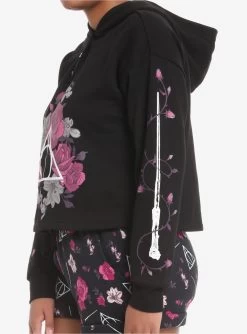 Harry Potter Deathly Hallows Floral Girls Crop Hoodie