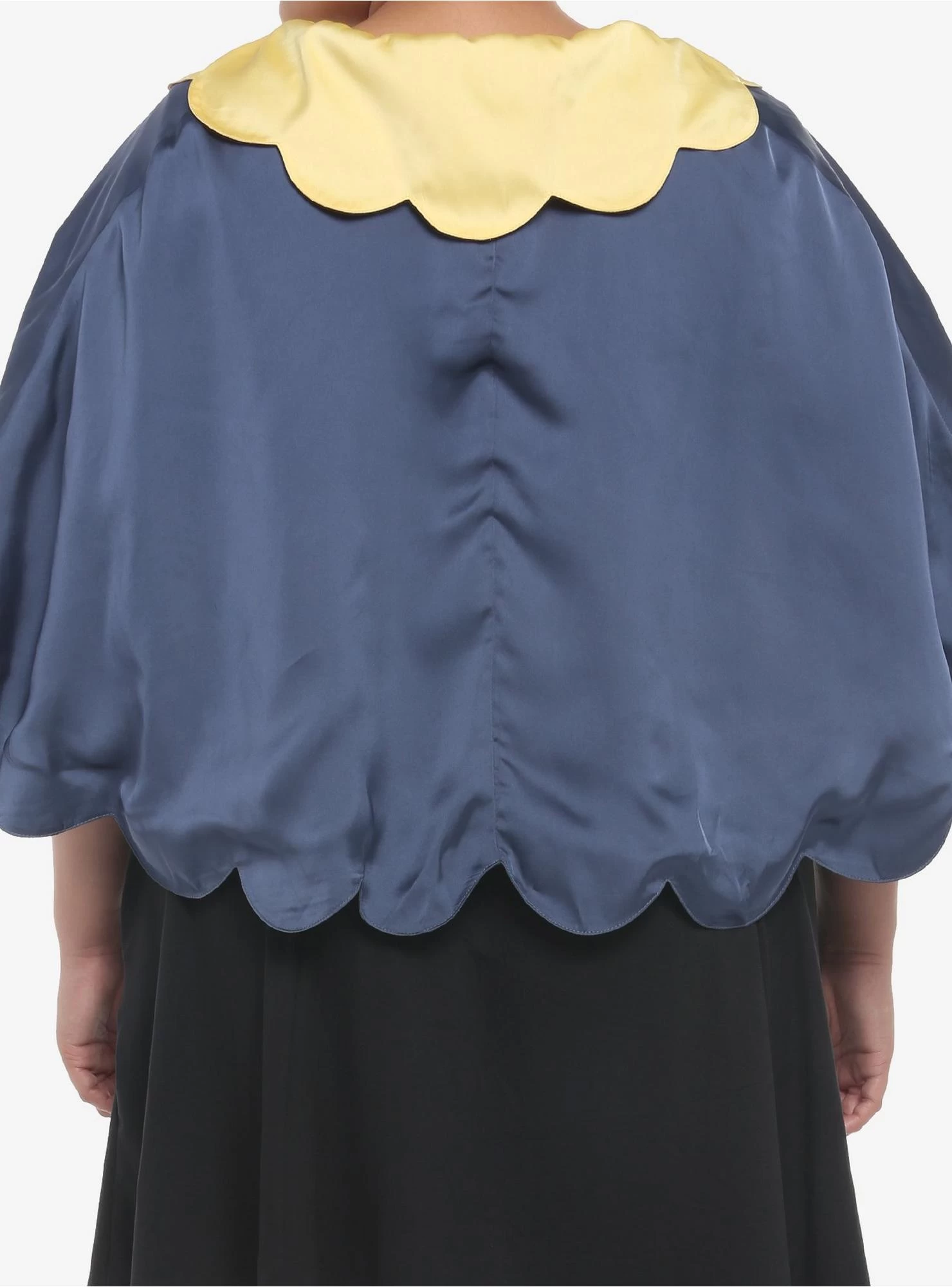 Whether you’re heading to the castle or wandering through the forest, make sure you stay layered up in this adorable capelet! Celebrate the 85th anniversary of Snow White And The Seven Dwarfs with this satin capelet, featuring a scallop hem throughout with an embroidered apple and Snow White’s silhouette at the chest. Comes with a contrast red bow tie at the center and a scoop neckline with a yellow scalloped collar.