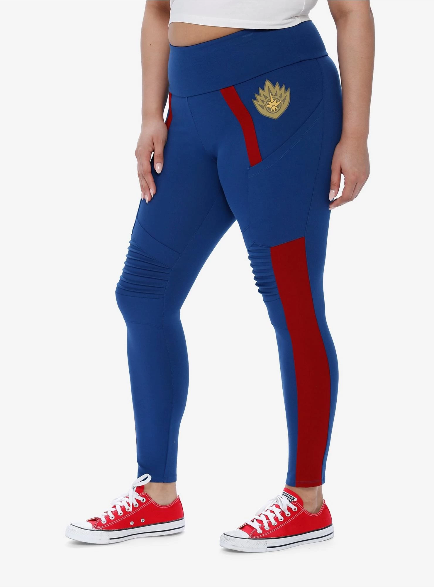 Are you ready for one last ride? Become a member of the Guardians of the Galaxy with these leggings! Inspired by their new look in Volume 3, these leggings feature red paneling on the sides and hip, plus moto detailing on the thigh. Comes with a side pocket and the Guardians logo at the hip in a puff print.