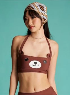Look your bear-y best whether you’re lounging poolside or swimming in the sea! This kawaii brown bear halter swim top features a bear face across the chest and 3D ears. Comes with adjustable halter straps and removable padding. Pair with the matching bottoms to complete your look!