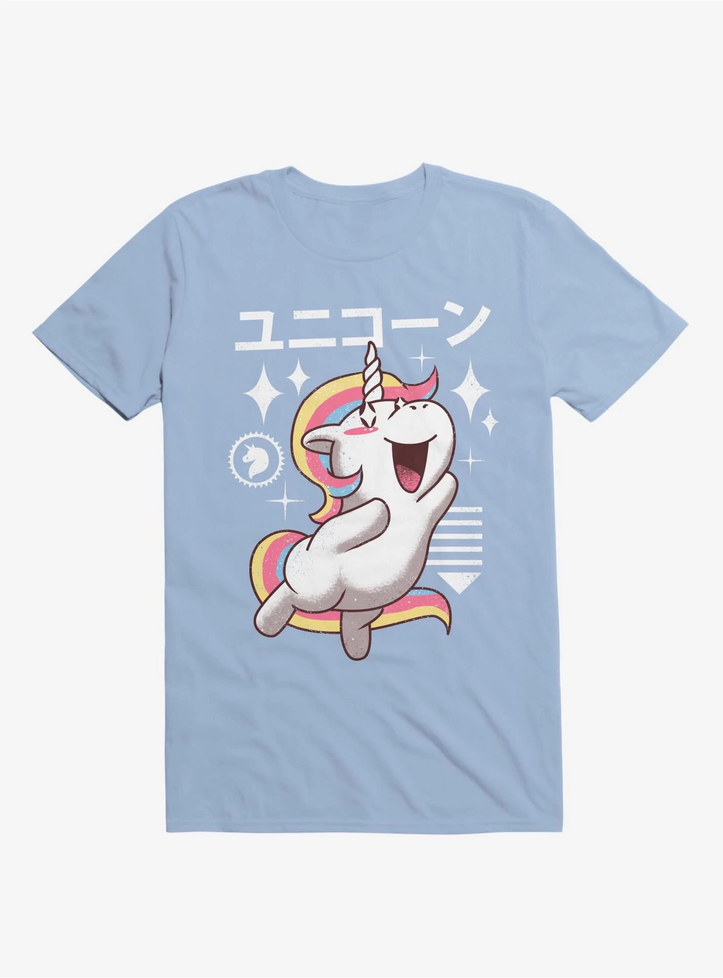 Soooo kawaii. This lightweight light blue graphic tee has the cutest unicorn ever screened on the front. There’s the iconic big horn — but you’ll be mesmerized by the even bigger smile!