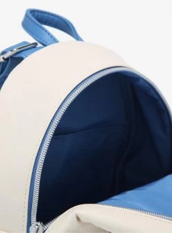 Stitch would never leave any of these ducklings behind! From Lilo & Stitch, this cream and blue mini backpack features an image of Stitch lovingly looking over some ducklings. Adjustable straps, front zipper, interior drop pocket and silver tone hardware.