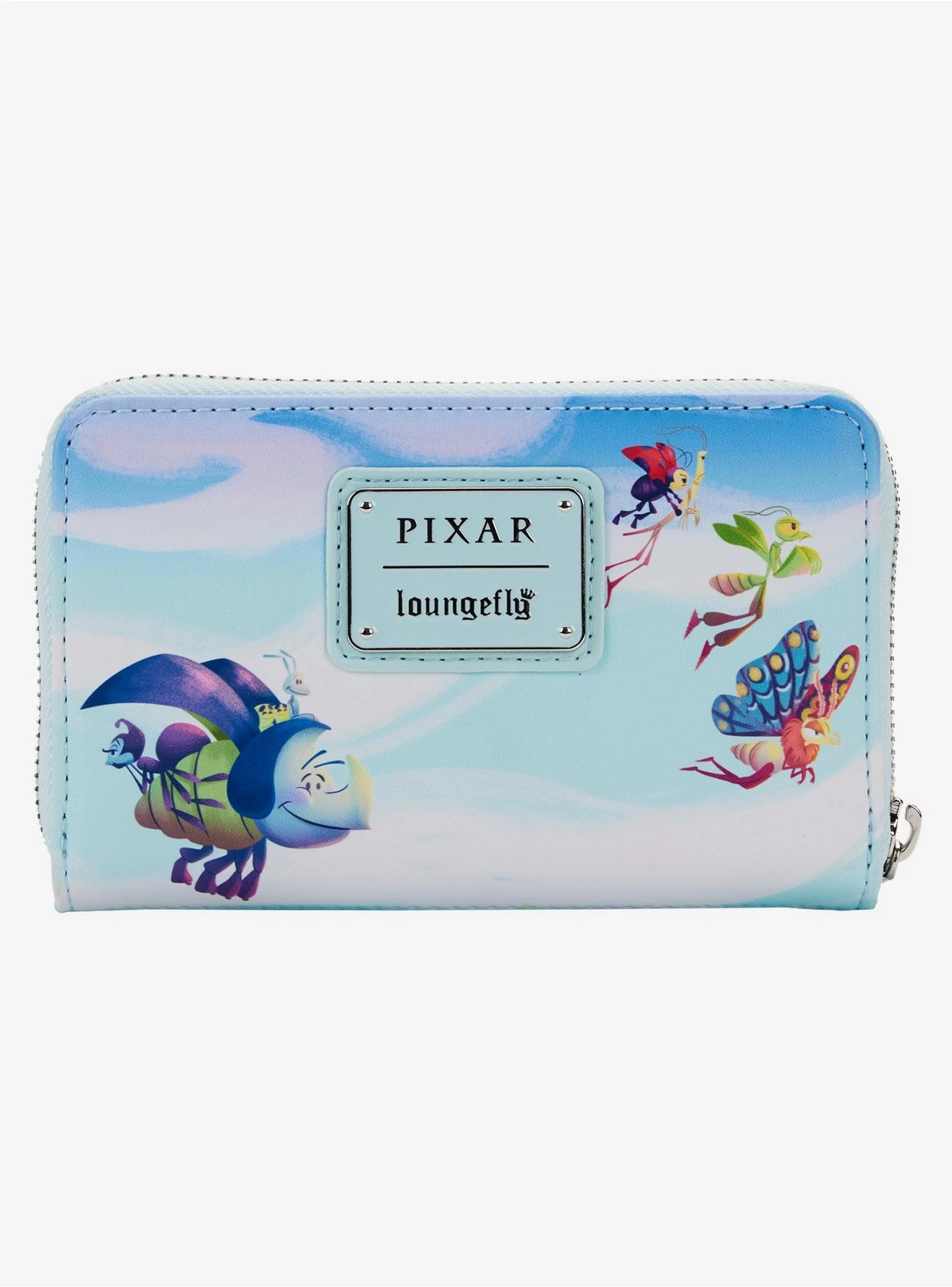 Spend a day out in the sun with your favorite crawling creatures with this zipper wallet from A Bug’s Life. On one side you’ll find our lovely caterpillar friend Heimlich enjoying his favorite snack – candy corn of course! You’ll find the rest of the runaway gang from P.T. Flea’s Circus are flying with the wind on the other. This wallet features other applique, embroidered and printed details.