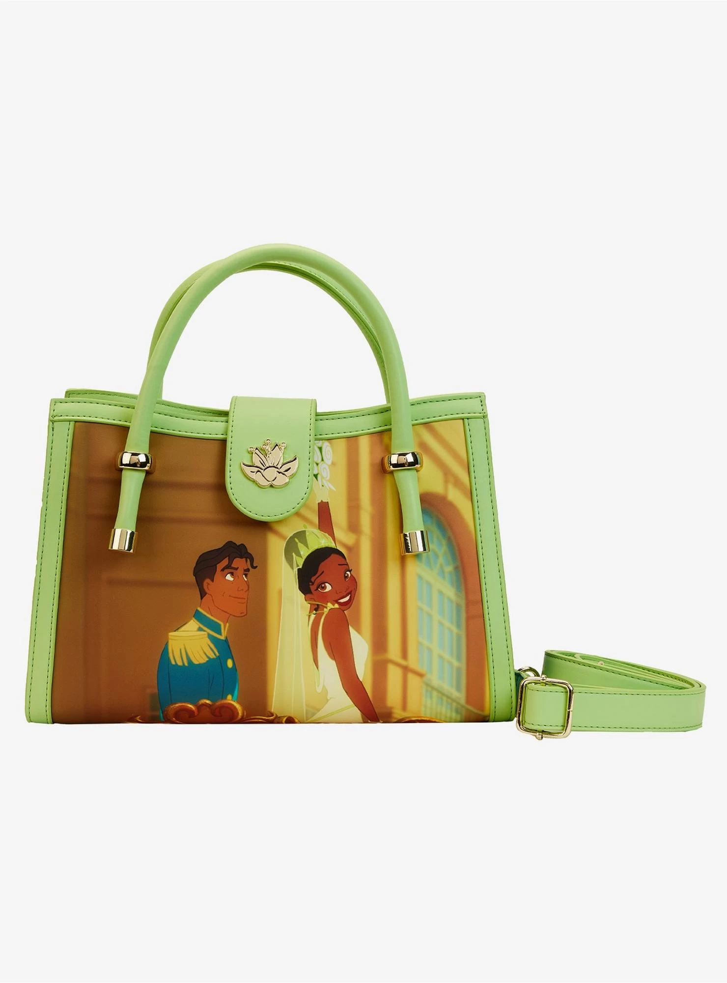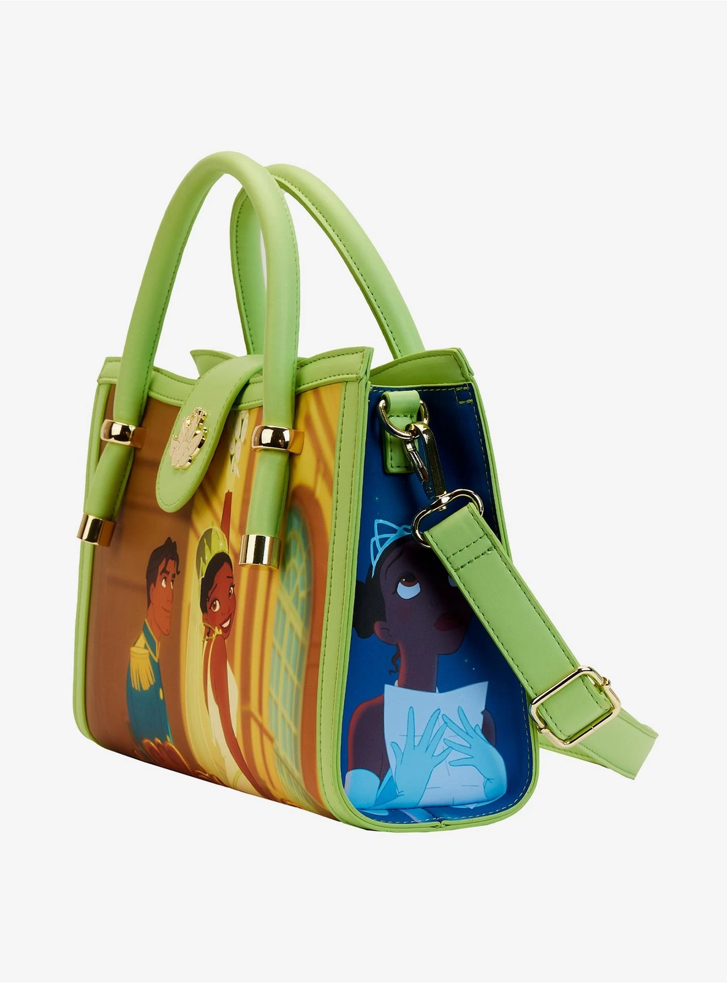 Follow your heart and you’ll find everything you need! Relive the magical tale of The Princess and the Frog with this satchel bag! Featuring scenes from the film depicted all around. Comes with an adjustable and detachable crossbody strap, snap-strap closure and top carrying handles.