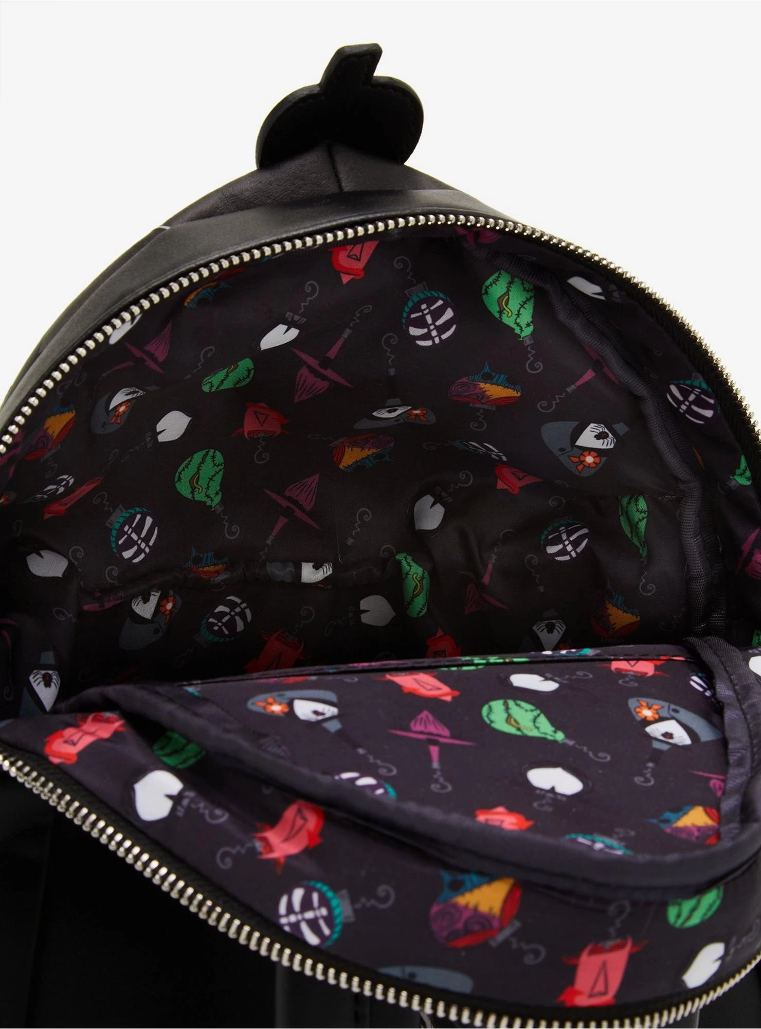 Fall into Halloween Town with this frightfully fun mini backpack! It’s shaped like a Halloween tree with your faves from The Nightmare Before Christmas as ornaments all around, like Jack, Sally, Zero, Oogie Boogie and more. The iconic striped snake is also wrapped around each layer, plus the ornaments glow in the dark! Comes with interior drop pocket and adjustable straps.