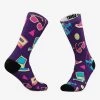 Pledge your allegiance to Wakanda with this pair of novelty socks. Featuring rows of cyan blue Black Panther masks woven against a navy blue background, these cushiony-soft socks also feature comfortable calf bands to keep them in place all day. Officially licensed by Marvel.