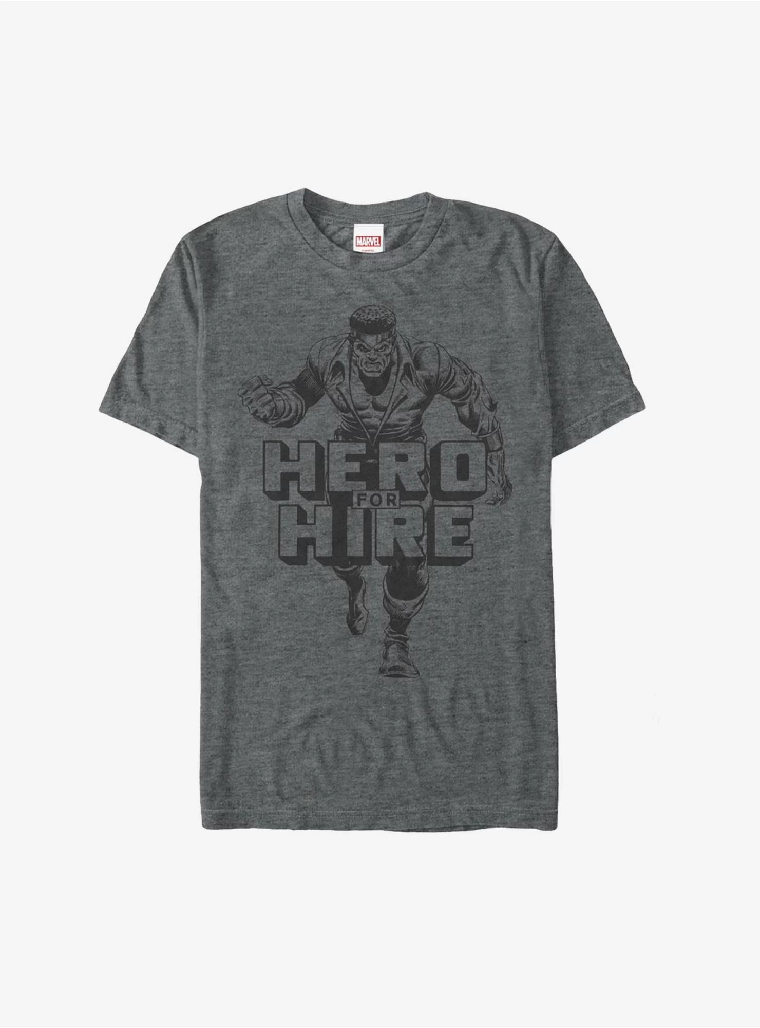 Luke Cage’s skin is impenetrable but his Marvel Luke Cage Grayscale Heather Charcoal T-Shirt sure isn’t, so don’t you dare tear it! Jessica Jones’ partner, Powerman, is featured in a grayscale print on this cool gray Hero for Hire shirt. 60% Cotton, 40% Polyester.