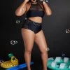 You’re already the coolest ghoul in school, so keep that energy up at the pool! This Monster High swim top is a halter design with colorblocking and a bat inspired by Draculaura at the center. Comes with adjustable tie straps. Pair with the matching bottoms to complete your boo-tiful beach look!