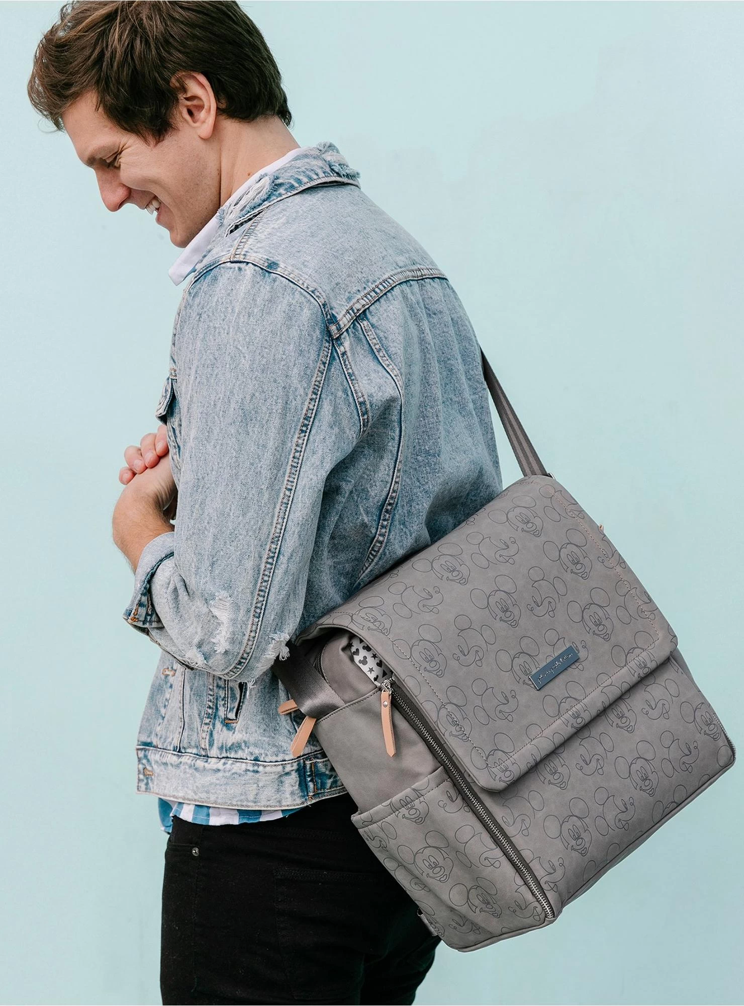 Celebrate the magic of Disney’s Mickey Mouse in the latest collaboration with Disney. This Boxy Backpack is outfitted in a cheerful microprint that spells out love for Mickey Mouse fans, and perfectly coordinates with the other bags and accessories in the Love Mickey Mouse collection. With every detail at the ready, the spacious and well-appointed Boxy Backpack cleverly features a built-in changing station, lots of organizational interior and exterior pockets, and offers multiple carrying options for maximum versatility. Includes a removable zippered pouch in coordinating microprint. Spacious interior with 5 pockets and a key clip, 2 exterior bottle pockets, magnetic front flap closure, plus snaps for added security.