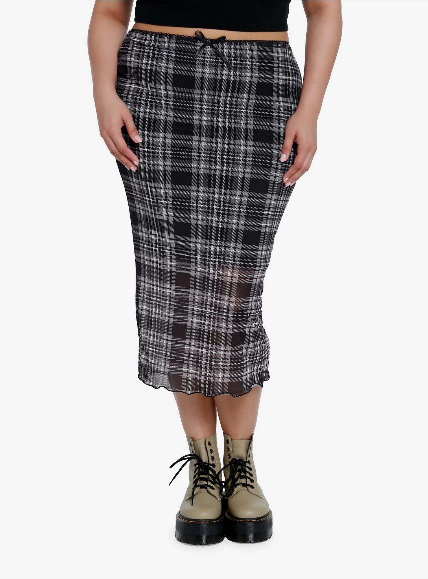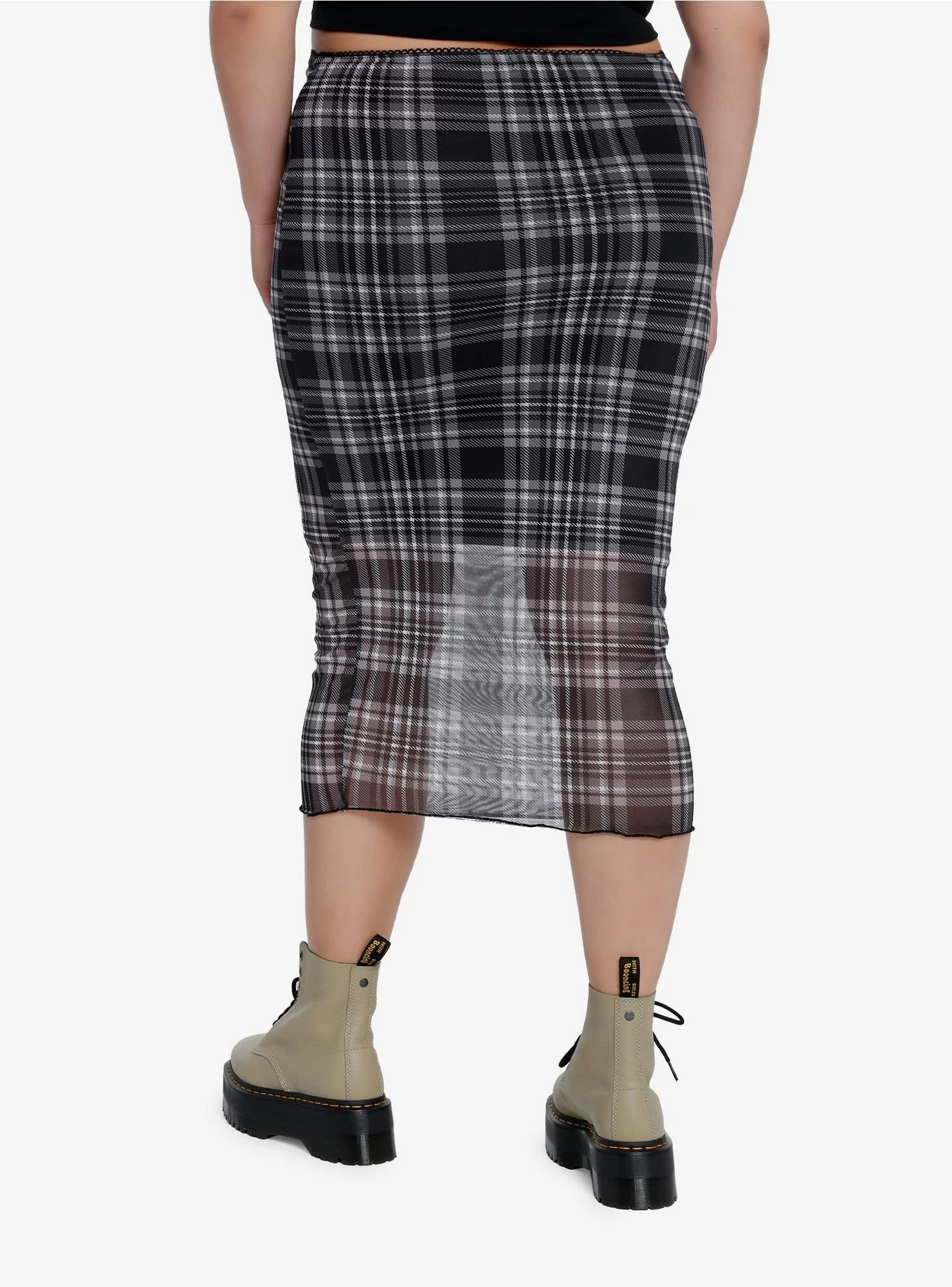 Social Collision Black Plaid Mesh Midi Skirt Plus Size