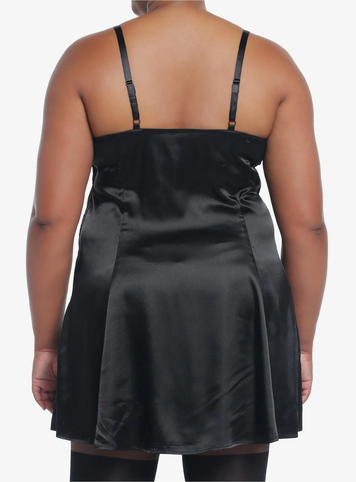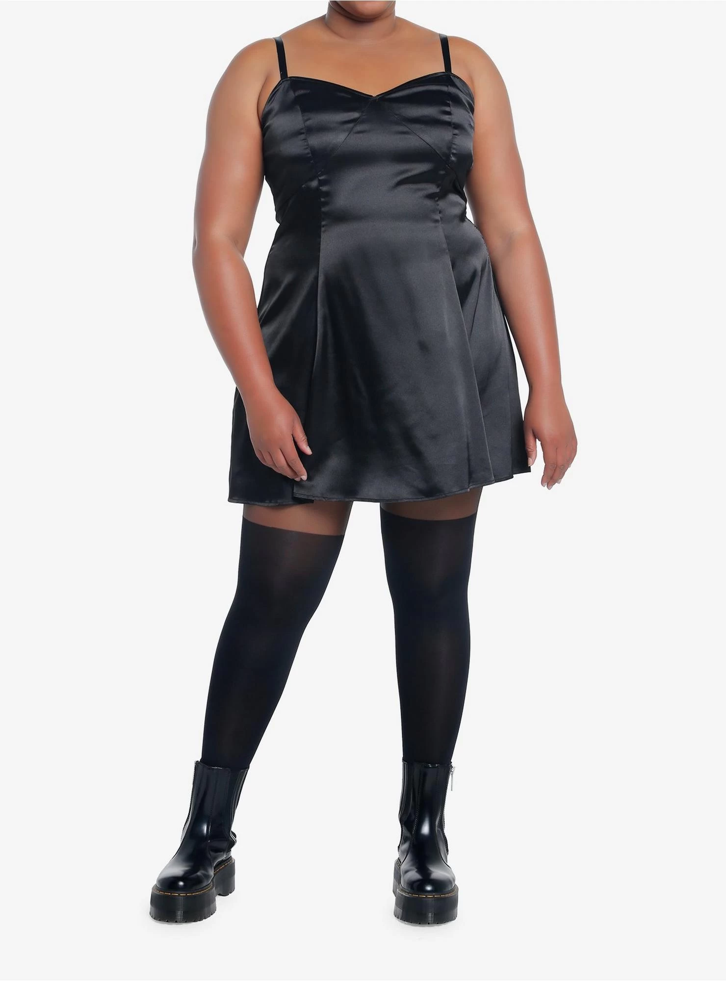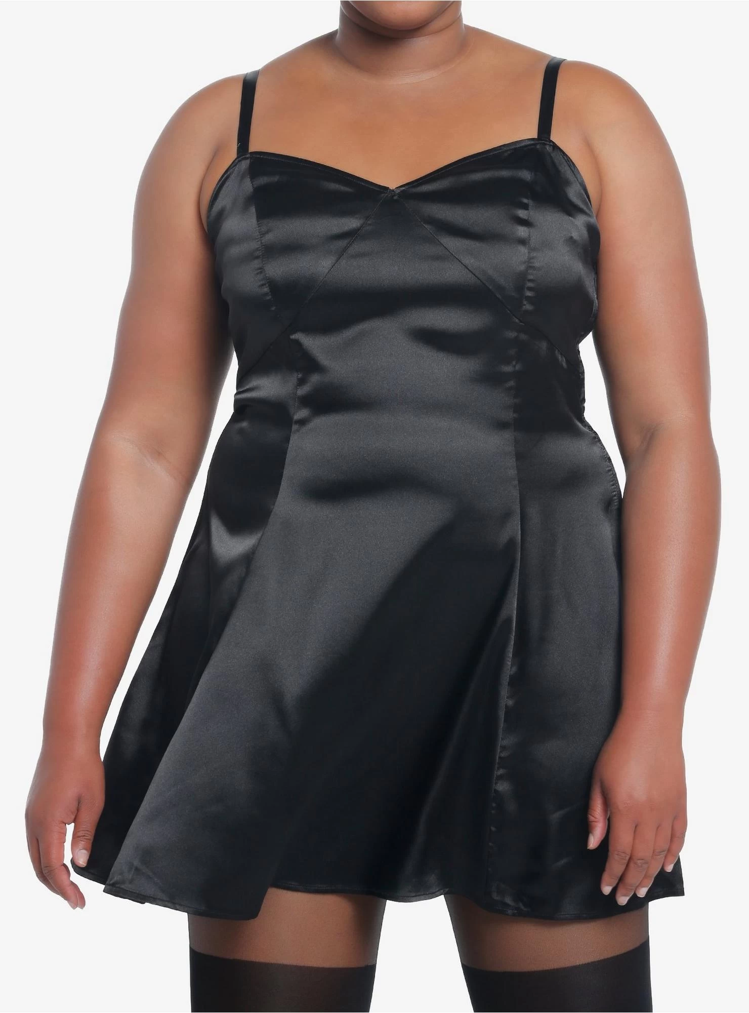 Spice up your wardrobe with this flirty dress! This black satin slip dress features adjustable straps and a side seam zipper.