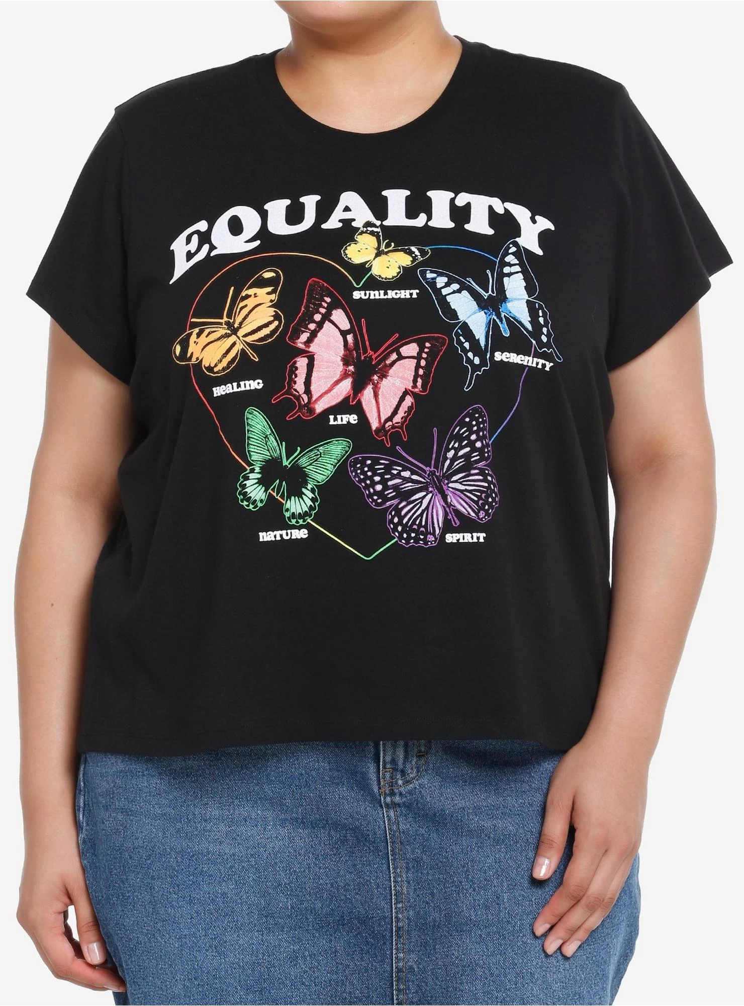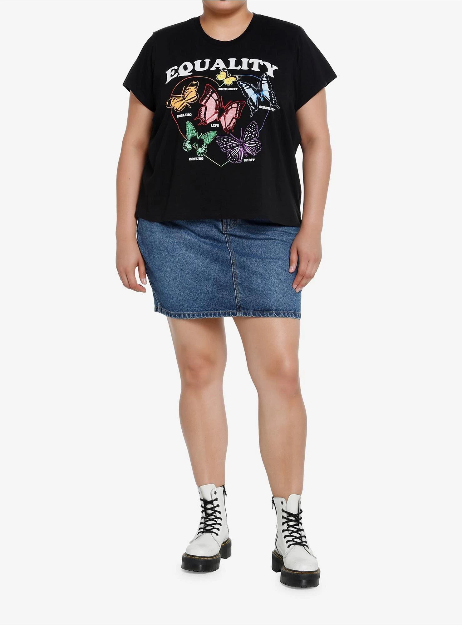 Social Collision Equality Butterflies Crop T-Shirt Plus Size