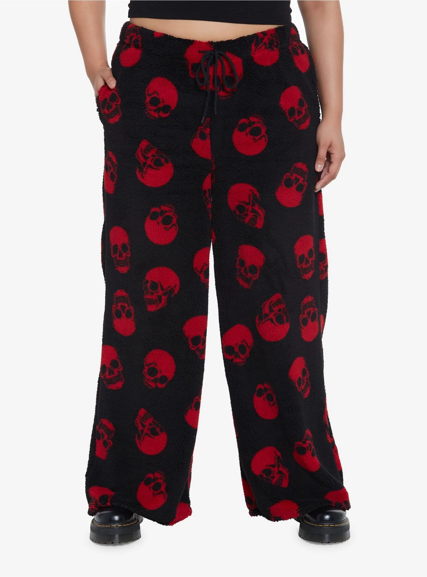 Social Collision Red Skulls Sherpa Girls Lounge Pants Plus Size