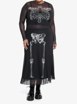 Social Collision Skeleton Anatomy Mesh Midi Skirt Plus Size