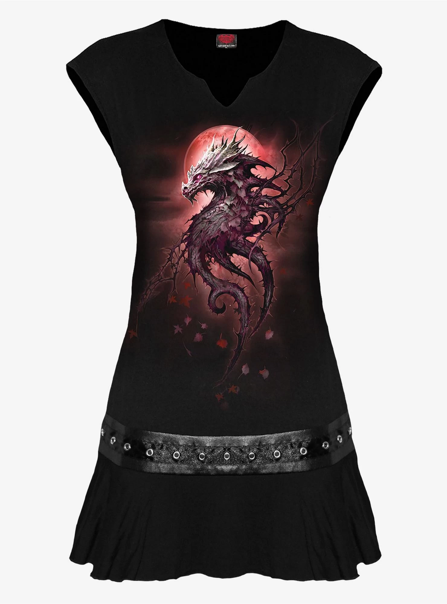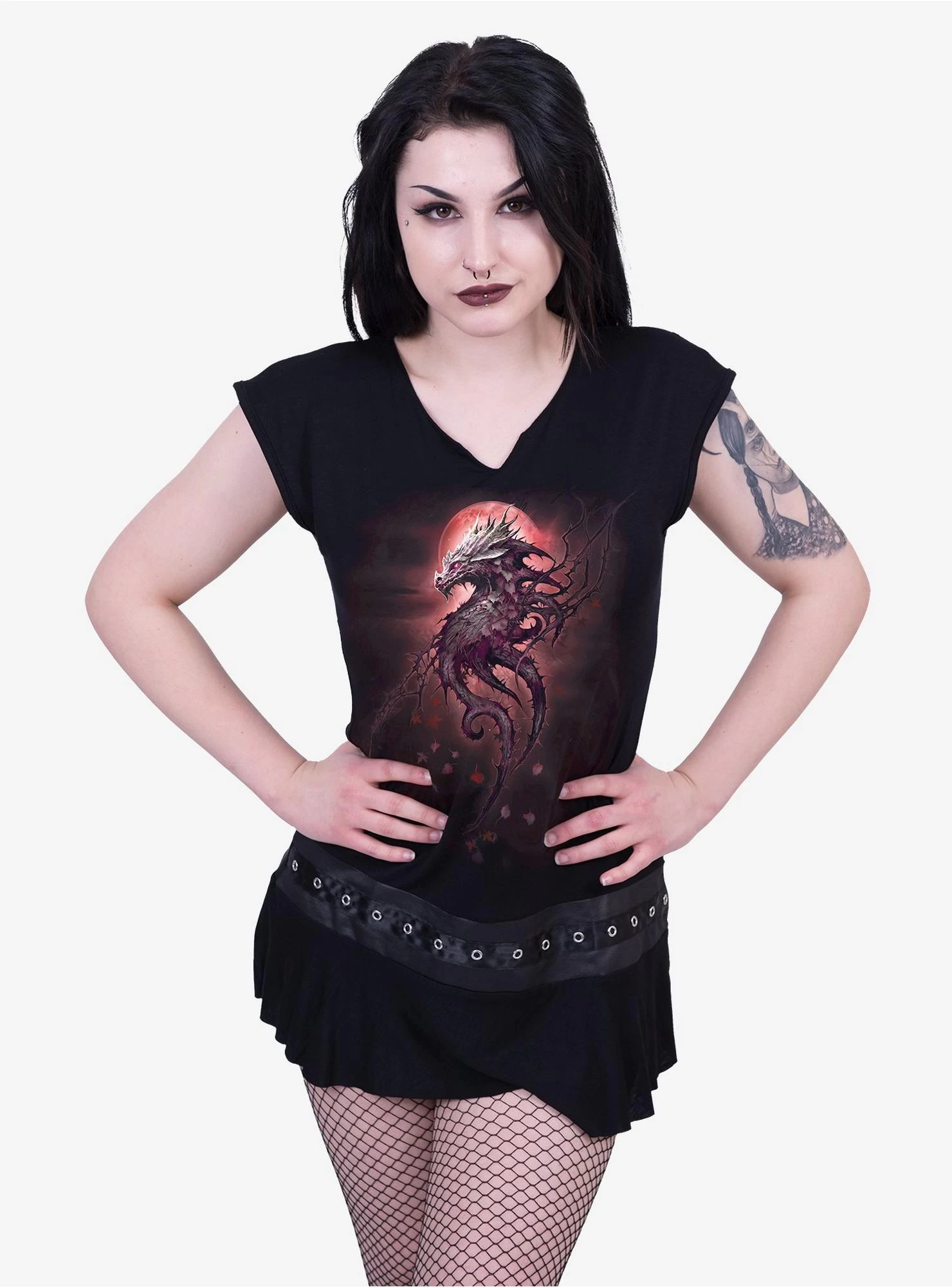 Spiral Oak Dragon Stud Waist Mini Dress Black is made of 95% Viscose 5% Elastane, jersey using skin friendly, Azo-free, reactive dyes.
