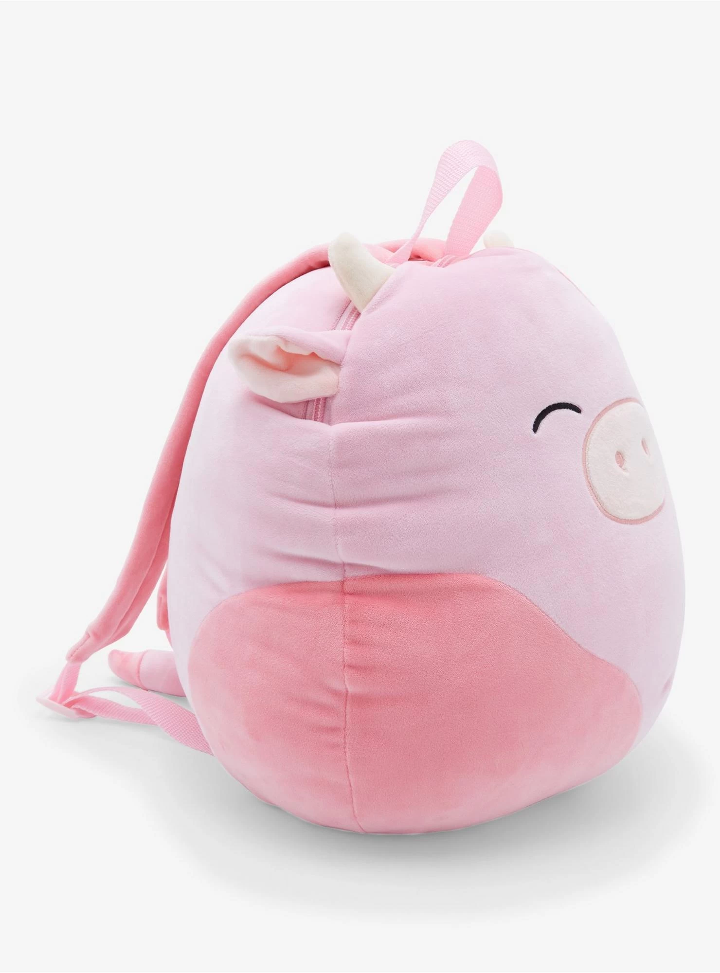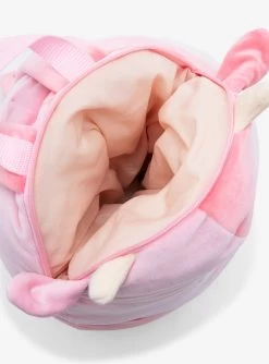 Take your Squishmallows on-the-go with the perfect Squishmallows backpack! This large Squishmallow backpack is as soft as a regular Squishmallow, and features a winking strawberry cow. Comes with a back zipper and adjustable straps.