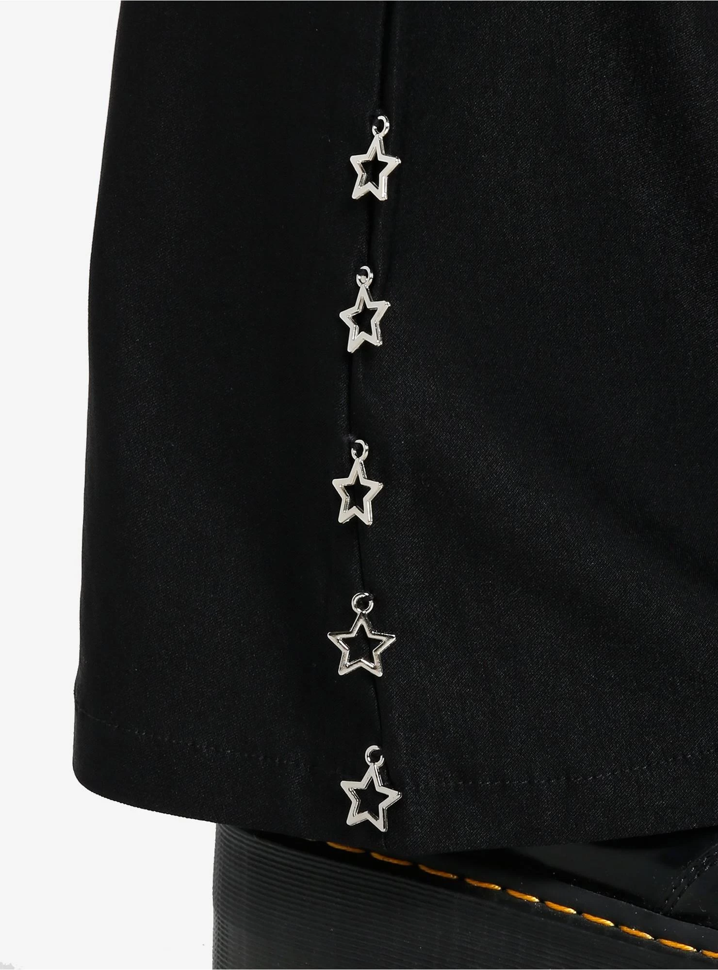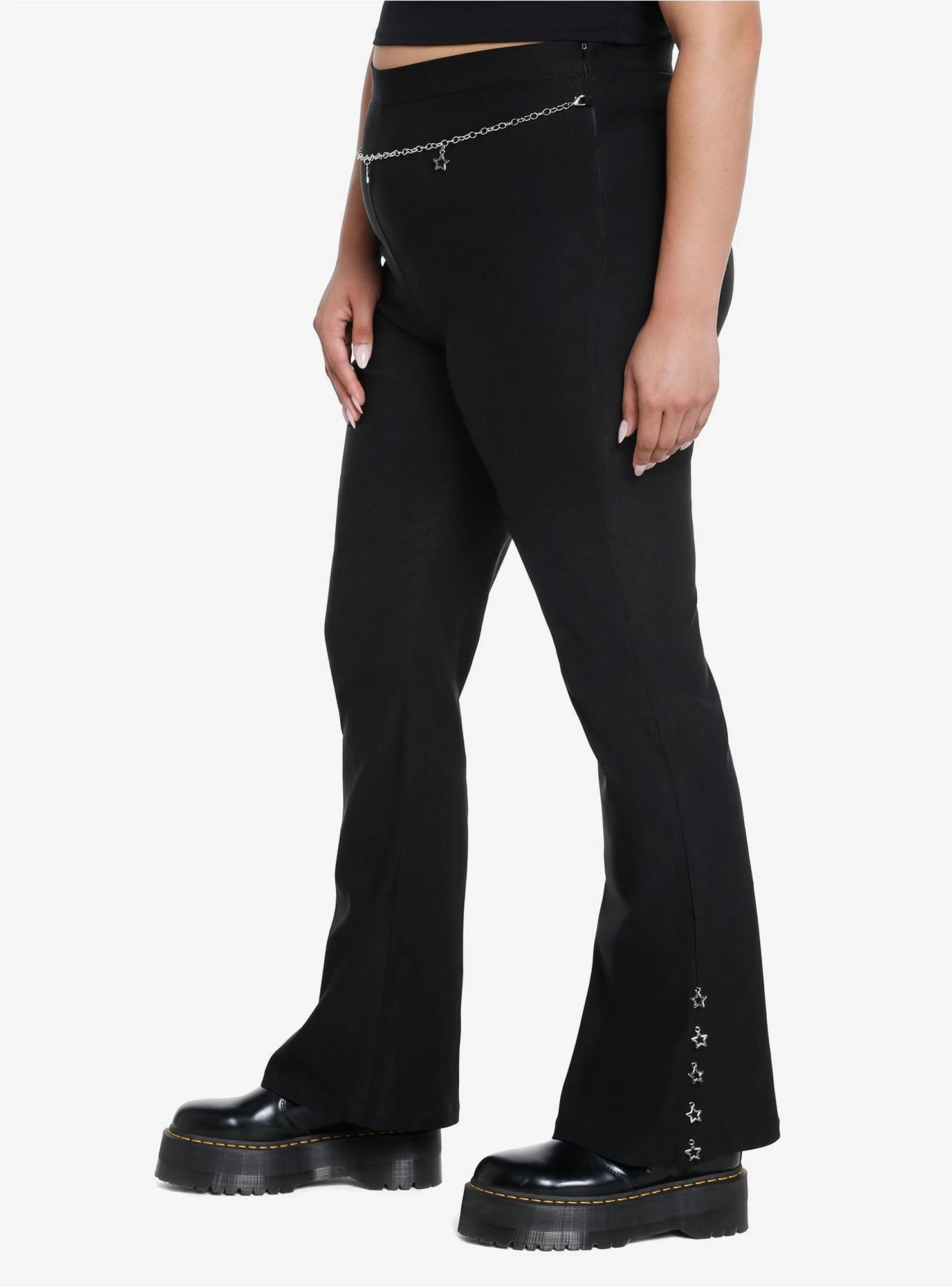 Take your look to the stars! Add some flare to your look with these fitted leggings, featuring a slight flare at the legs that are decked out with star charms. Comes with a removable star chain belt.