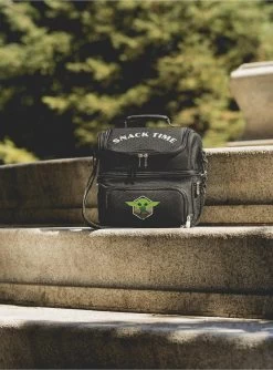 Cute up your lunch box game with the Star Wars The Child Pranzo Lunch Tote. Insulated with separate hot and cold compartments with an 8-can capacity, and includes a napkin, flatware, and salt and pepper shakers. This lunch tote also features zippered side mesh pockets on each side, a hidden flatware section, adjustable shoulder strap and a soft grip top handle.